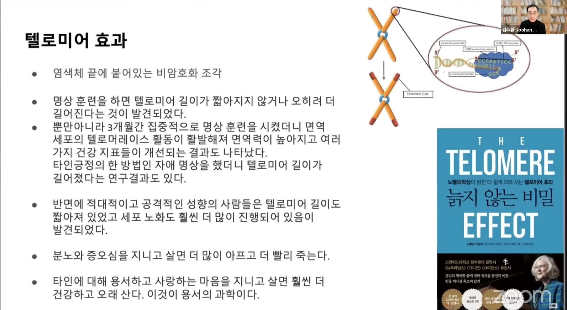* 명상 훈련을 하면 면역력은 높아지고 텔로미어 길이가 길어진다.